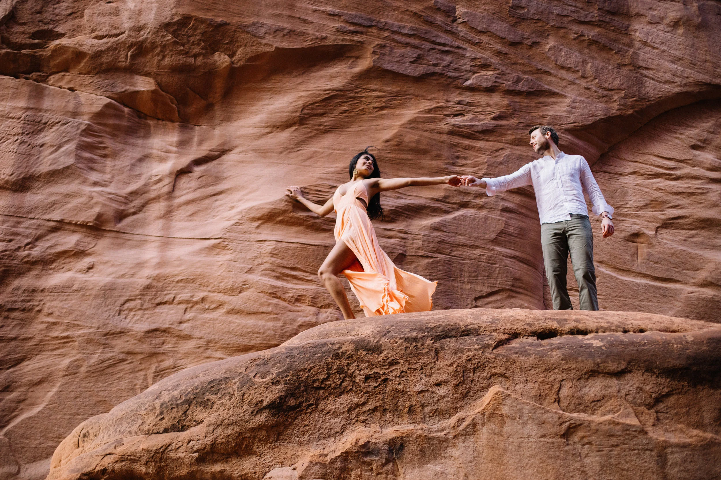 This wedding will require some walking. Plan on flats, block heels, or wedges. If you are sensitive to elevation plan to get there early to acclimate. The only substance you should plan on drinking too much of is water! Daytime temperature should be between 60-75 degrees, but the desert mountains can get chilly at night.
